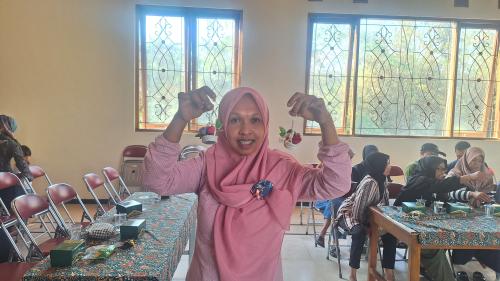Ibu Titin memberikan wawasan tentang cara pengolahan sampah anorganik dan menyertakan beberapa contoh konkret mengenai bagaimana sampah tersebut dapat diubah menjadi produk yang bermanfaat dan memiliki nilai ekonomis. Misalnya, tutup botol bekas yang sering dianggap sebagai limbah dapat diubah menjadi gantungan kunci yang unik dan menarik. Selain itu, kardus bekas yang biasanya dibuang begitu saja dapat diolah menjadi jepit rambut yang modis dan fungsional. Bahkan, minyak jelantah yang sering kali dianggap sebagai limbah berbahaya dapat dimanfaatkan kembali dengan diolah menjadi lilin aromaterapi yang memiliki nilai ekonomi yang baik.